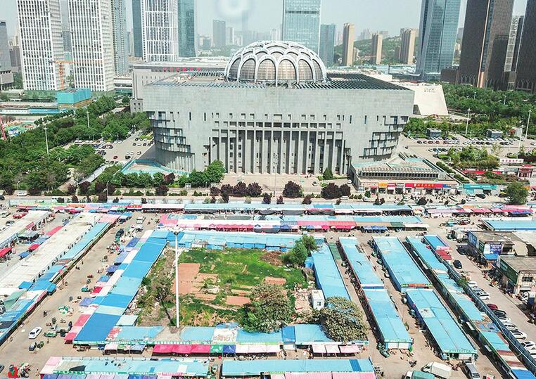 5月8日,记者来到位于山东博物馆西侧的银座圣洋物流农副产品批发市场,从高空俯瞰,市场由众多简易板房组成“回”字形,在市场的中心区域原是一块荒地,如今开垦之后成了一块农田。据了解,该处农贸市场已被冻结,将从5月下旬开始实施整体拆迁。按照规划,下一步该片区将用于建设省市党史方志馆和市民文化中心。(济南时报)