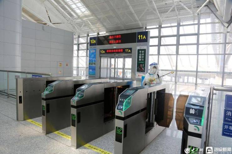济南各火车站严格落实地方防疫要求,对候车室、售票厅等公共场所加强通风,坚持两小时一次全面消杀,对自助售取票机触摸屏、自助验票闸机、电梯扶手按键等旅客使用频繁的设施设备,找准旅客使用较少的间隙,加大消杀频次, 在售票厅、进站口、候车室、安排专人查验健康码、场所码、48小时核酸阴性证明,有序引导旅客分散进站候车。