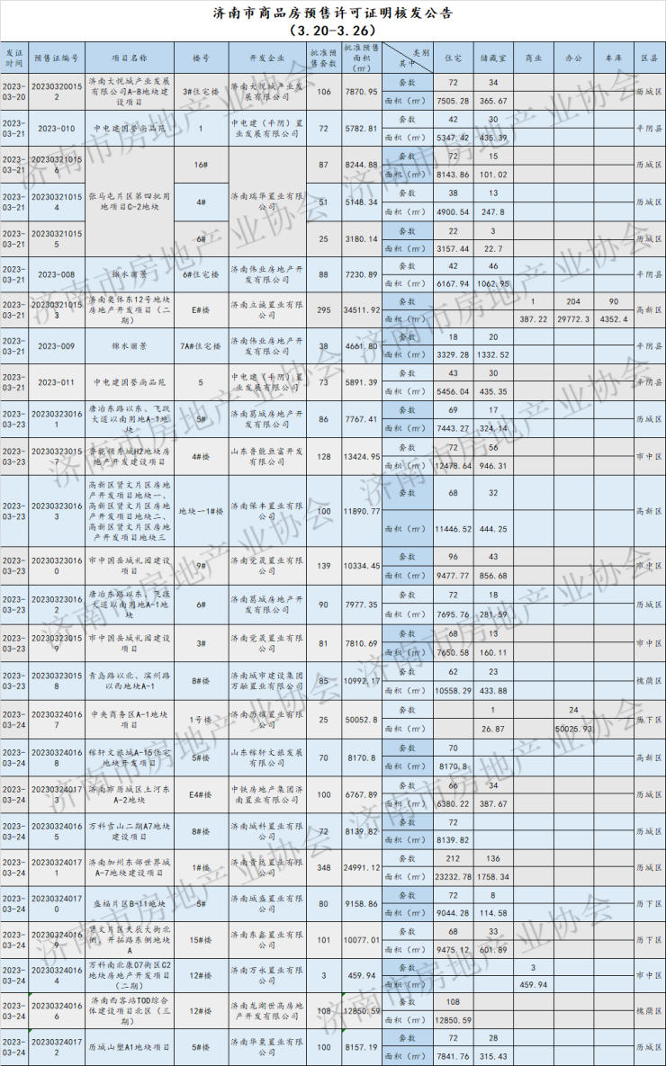 【预售许可|周网签量|土地信息】济南市房地产业协会每周快讯(3.20-3.26)