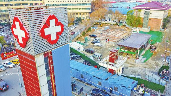 12月11日,在北园大街北侧的山东大学第二医院大门东侧,地铁2号线历山路站的一处新出入口呈现雏形。出入口上方的钢架结构和装饰板材安装基本到位,通往地下站点的上下扶梯也安装完成,目前施工进入直梯安装和周边路面铺装阶段。该出入口距离山东大学第二医院门诊楼不到百米,前往医院就诊的市民从该出入口出站后,步行到门诊楼仅需1分钟的时间。