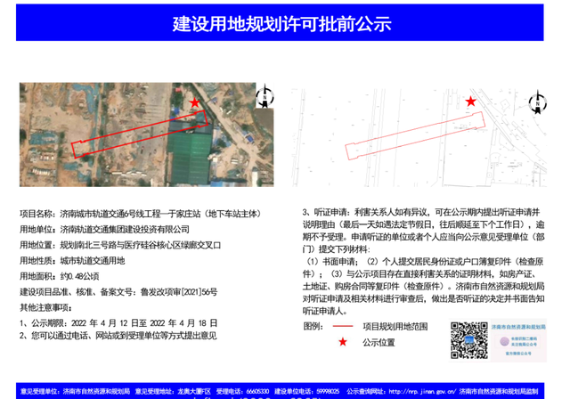 济南市自然资源和规划局,公示了济南轨道交通6号线,位里庄站、于家庄站、孟王庄站