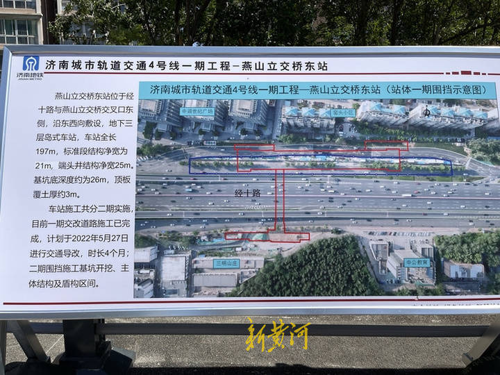 燕山立交桥东站是济南地铁4号线一期工程17座车站中的一座,也是交通导改最为复杂的车站之一。根据济南轨道交通集团整体施工要求,5月27日晚将对该处站点进行围挡施工,由于该处站点人流量、车流量较大,因而备受市民关注。