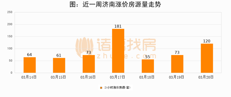 根据诸葛找房数据显示,济南24小时涨价房源量为120套,较03月19日增加47套,环比上涨64.4%。与此同时,涨价房源占比小幅扩大,业主信心有所提升。
