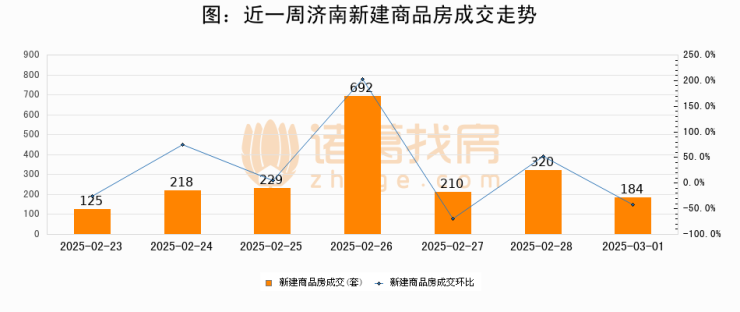【济南成交日报】03月01日新房成交184套;涨价房源6套