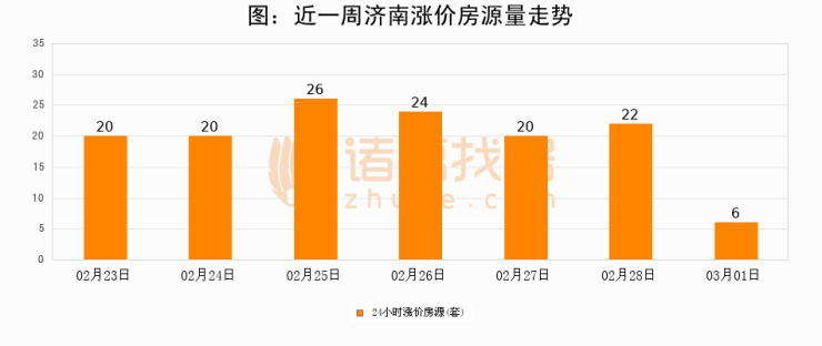 根据诸葛找房数据显示,济南24小时涨价房源量为6套,较02月28日减少16套,环比下降72.7%。与此同时,涨价房源占比小幅回落,对于购房者来说是一个入市窗口期,购房者可抓住时机入市。