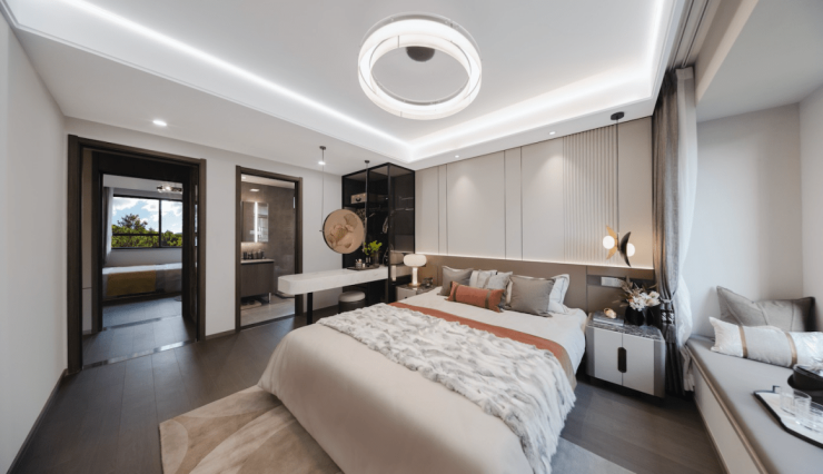 LDKG餐客厨阳一体化,复合式通透社交空间,超越大平层的使用感受。三面向阳约11米南向面宽,南北通透,阳光清风盈染入室,享受优质的视野特权,环瞰园林美景。科学厨房,采用U形设计,动线流畅,高效利用的同时,轻松施展厨艺,整个厨房空间大气合理,节省烹饪时间。