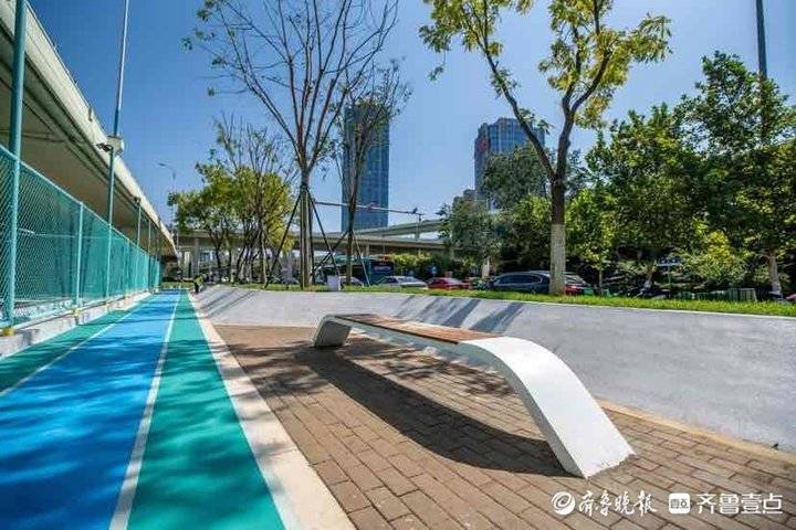 上有车行道,下有运动场,川流不息的马路搭配热火朝天的健身公园,这幅立交桥低线公园的独特景象成为济南街头一抹亮色。
