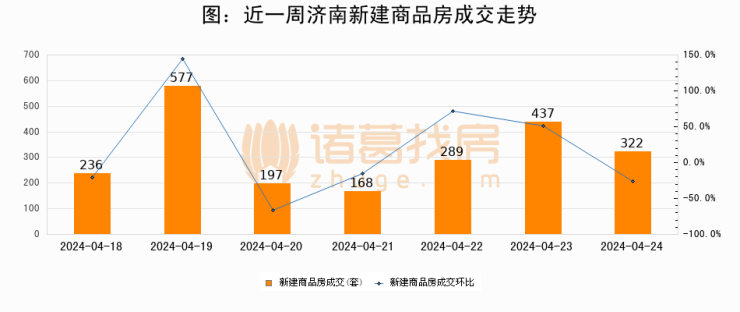 【济南成交日报】04月24日新房成交322套;涨价房源25套