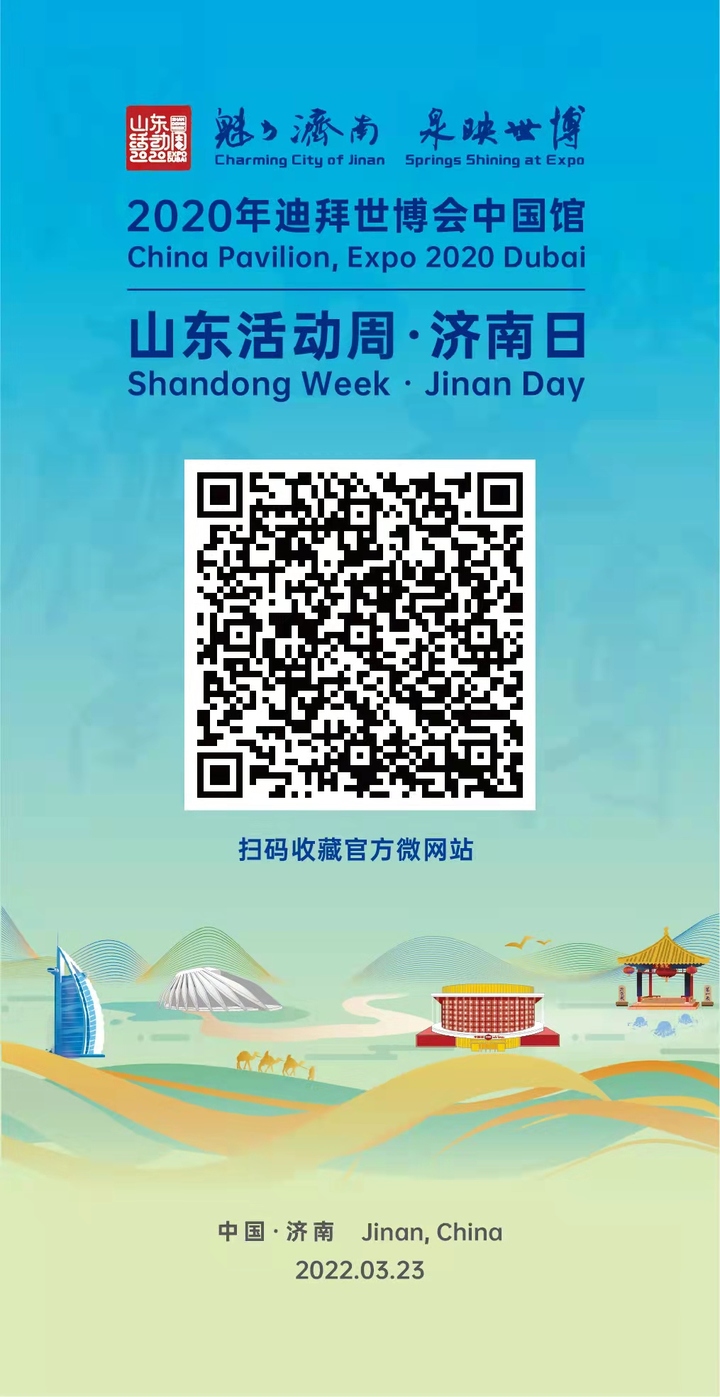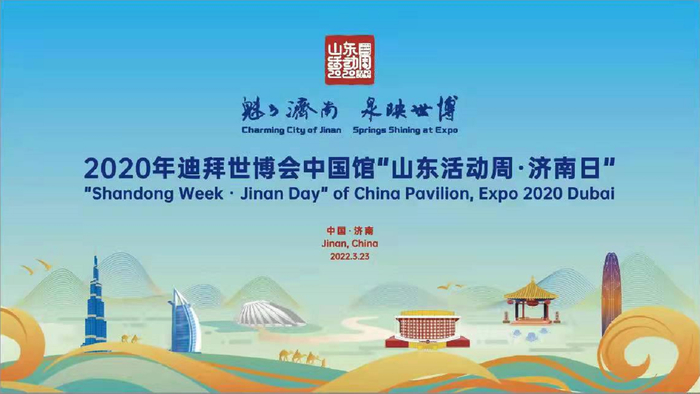 迪拜世博会中国馆“山东活动周·济南日”定于3月23日,以“魅力济南,泉映世博”为主题,旨在通过世博会平台向世界展现济南“山、泉、湖、河、城”水乳交融的人文风貌,展示济南“大强美富通”现代化国际大都市形象,进一步扩大济南与中东地区经贸文化往来,全面落实黄河流域生态保护和高质量发展战略,打造国内国际双循环战略枢纽,开创新时代社会主义现代化强省会建设新局面。
