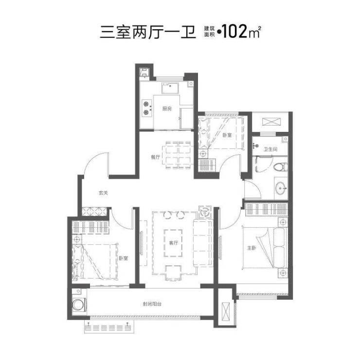 其中,在建面约102㎡方正三居户型中,南向三开间、全明户型设计,即保证了室内的通风、采光,又做到了空间布局上的合理性以及空间的高利用率。