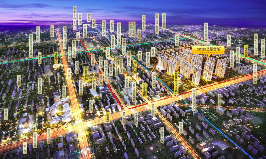 2011年,碧桂园进入济南,在经十东路沿线布局,打造碧桂园·凤凰城,通过融合高品质产品、优美园林环境、完善生活配套、国家一级资质物业服务等优质元素,为济南人带来了排名前列“五星级的家”。又以远见未来的前瞻布局,在东拓、章丘撤市划区、济南莱芜区划调整等城市发展背景下,碧桂园多点布局和持续深耕济南。