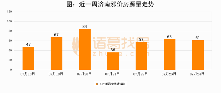 根据诸葛找房数据显示,济南24小时涨价房源量为61套,较07月23日减少2套,环比下降3.2%。与此同时,涨价房源占比小幅回落,对于购房者来说是一个入市窗口期,购房者可抓住时机入市。