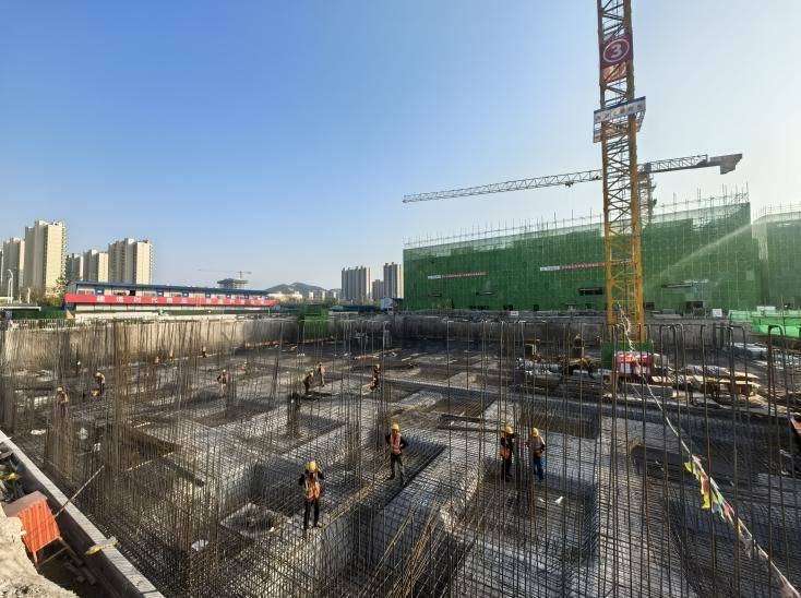 坚持围绕中心、服务大局,把开展主题教育与中心工作一起筹划、一体部署、一体推进。机器轰鸣、铁臂挥舞、工程车来回穿梭,在融园·济南唐冶产业园项目现场,项目部与施工团队抢时间,抓进度。作为市级重点工程,山东公司全力高效解决规划调整、扬尘响应、雨季施工等诸多难题。通过“书记工程”的引领带动,成立重点项目领导小组,抽调党员先锋力量组成突击队,落实和推行样板引路制度,在保证施工进度的同时,夯实项目施工质量。对于地下不规则溶洞问题,项目部通过一桩一勘及时发现,及时与产品中心、设计院现场踏勘,共同研究处理方案。在管理过程中充分下沉到一线施工班组,通过培训交底、实测实量、复盘总结等多种措施,加深项目管理人员及施工班组对项目管理要求的理解。目前,项目展示中心已封顶,其他建筑主体已全部完成正负零结构施工。