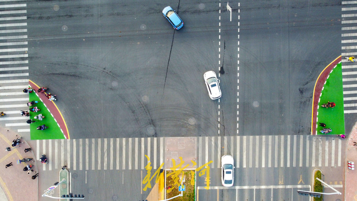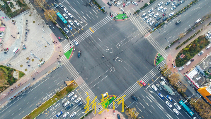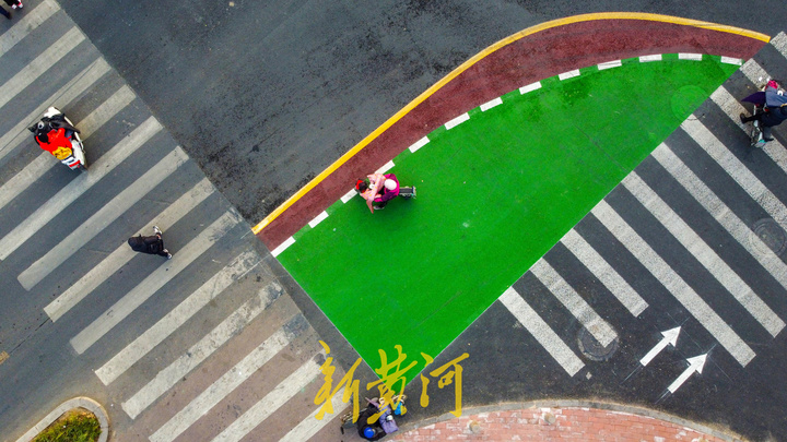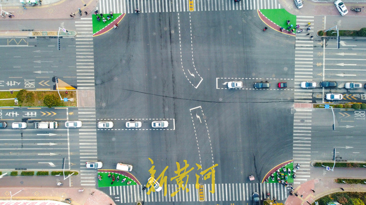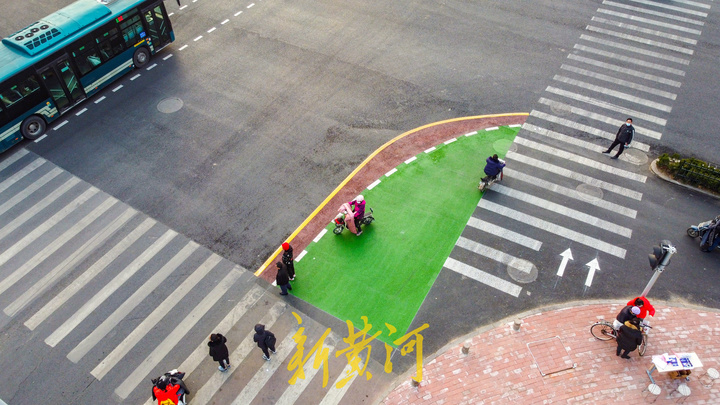 济南路口转弯处地面“红配绿” 成路口标线新标配
