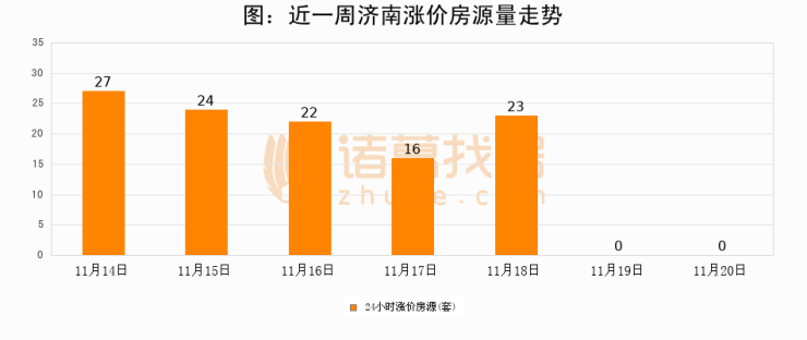 根据诸葛找房数据显示,济南24小时涨价房源量为0套,较11月19日持平。