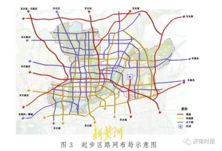 高标准打造4F级机场,加密航线网络,积极开通直飞世界重点城市航线,增强国际航线通达性,加快构建“机场+高铁+地铁”联运系统,提升枢纽功能,与周边机场协同联动打造现代化机场群。规划建设便捷畅通的跨黄河通道,加快推进起步区范围内国省道调线改建,构建功能完备的骨干路网,加强城市快速路与周边高速公路、重要交通枢纽的衔接,形成“两岸通达、纵横交错、城乡一体”的路网结构。规划建设以轨道交通为骨干、城市公交为主体、慢行交通为补充的绿色交通出行体系,科学布局城市轨道交通框架网络,建设“轨道上的起步区”,推进“小街区、密路网”,提高支路网密度,做好公共交通衔接,大力发展自行车、步行等慢行交通模式,提升公共交通分担比例,引领绿色低碳出行。突出静态交通规划建设,构建“有位、有度、有序、有法”的智能停车交通系统。加快实施小清河复航工程,高标准建设济南港,配套建设作业设备自动化、数据信息可视化、生产管理智能化的“自动化码头”,打造河海联运的“黄金水道”。