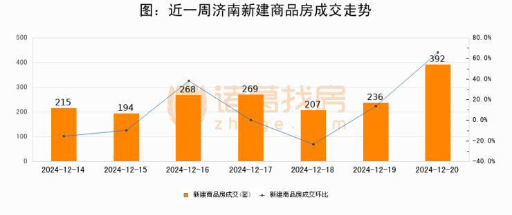 【济南成交日报】12月20日新房成交392套;涨价房源21套