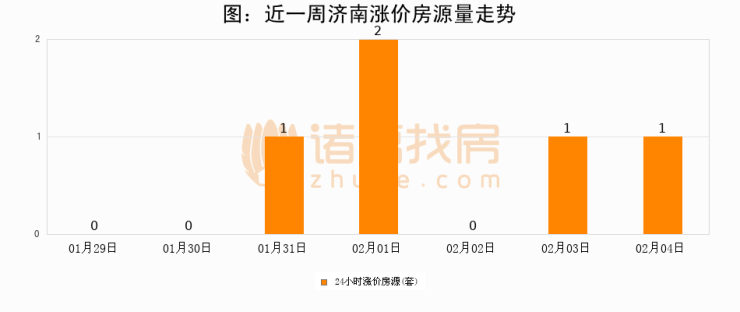 根据诸葛找房数据显示,济南24小时涨价房源量为1套,较02月03日持平。