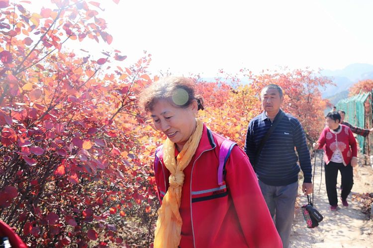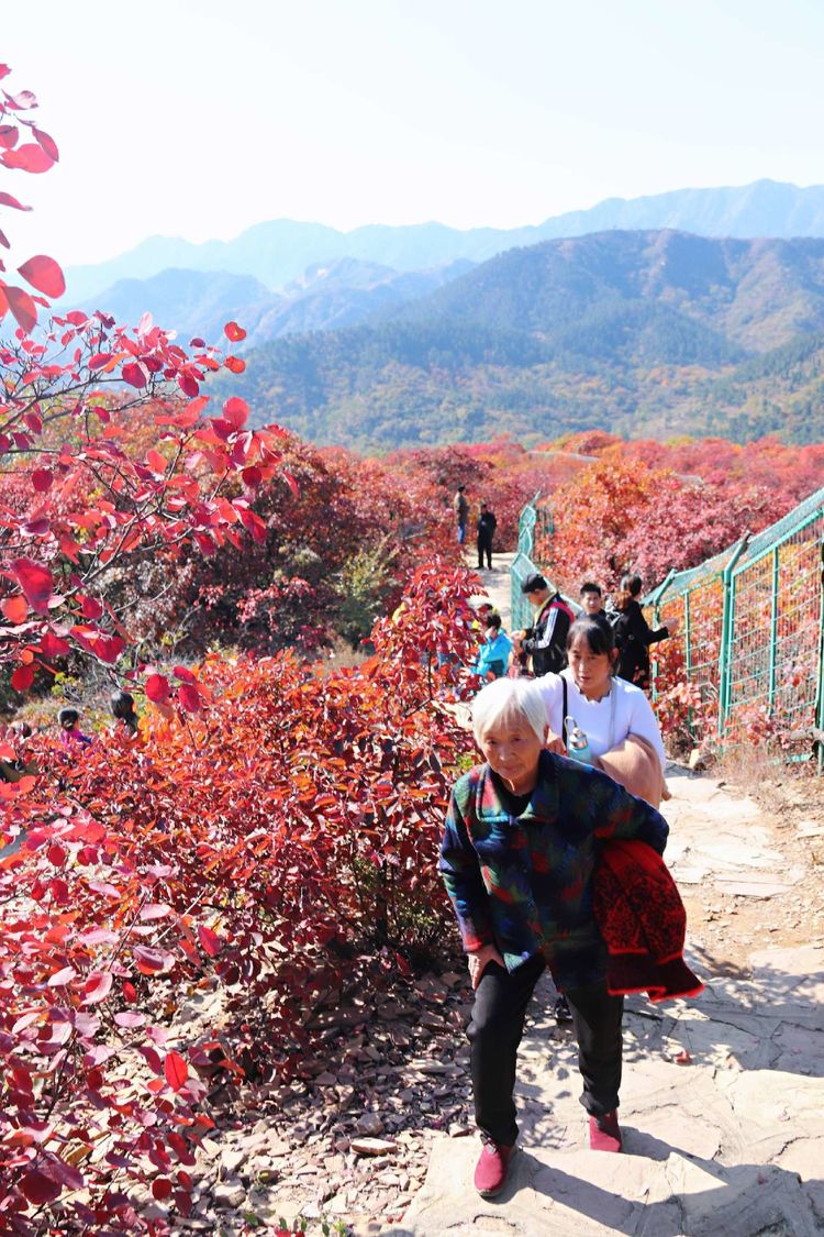 老奶奶也被这红叶美景吸引而来,无惧劳累,登高赏景。