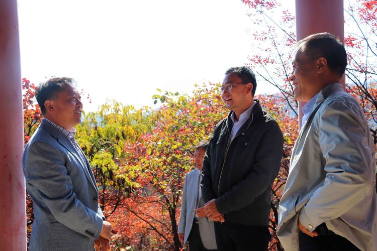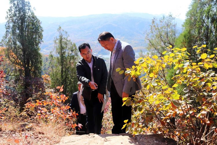 区领导来到红叶景区查看红叶生长状况和景区基础设施建设。