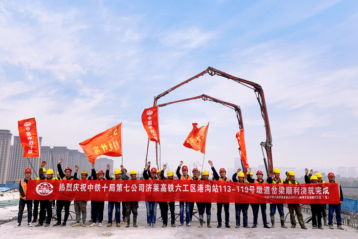 3月16日上午,历经24小时连续奋战,历城站(原港沟站)特大桥113~119#道岔现浇梁浇筑完成,标志着由中铁十局承建的济莱高铁全线较大体量现浇梁提前浇筑完成,为后续架梁和铺轨施工奠定了坚实基础。