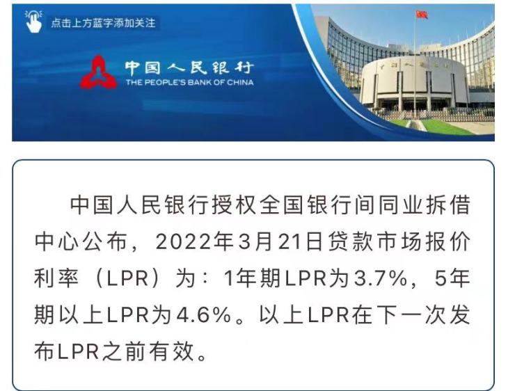 较新!2022年3月21日贷款市场报价利率(LPR)出炉!