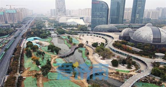 近日,济南西客站片区的腊山河施工改造前期准备工作在有序进行,位于河道两侧原有的木栈道、沙石景观已基本拆除,绿化带内的植被也在陆续迁移。在省会大剧院附近河段,广场地面石板也逐步拆除,腊山河景观提升工程即将全面开启。