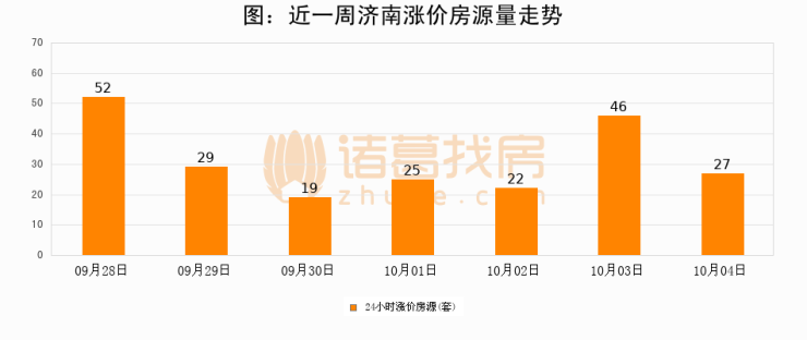 根据诸葛找房数据显示,济南24小时涨价房源量为27套,较10月03日减少19套,环比下降41.3%。与此同时,涨价房源占比小幅回落,对于购房者来说是一个入市窗口期,购房者可抓住时机入市。