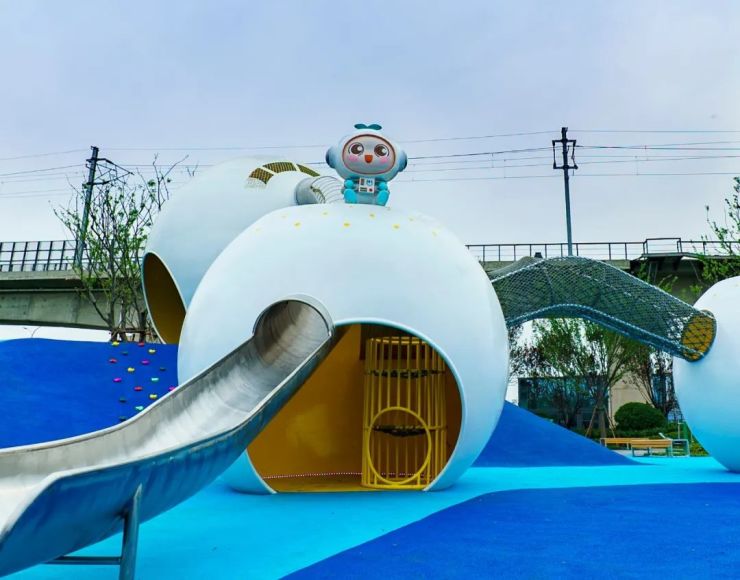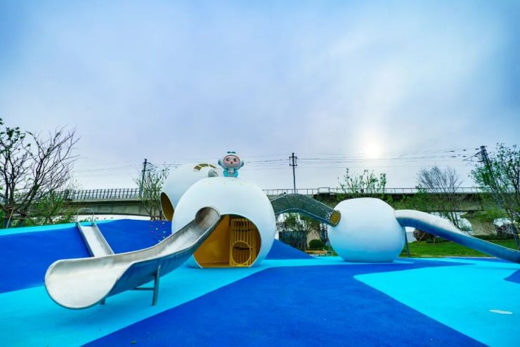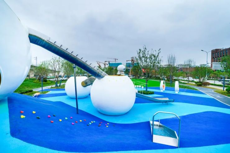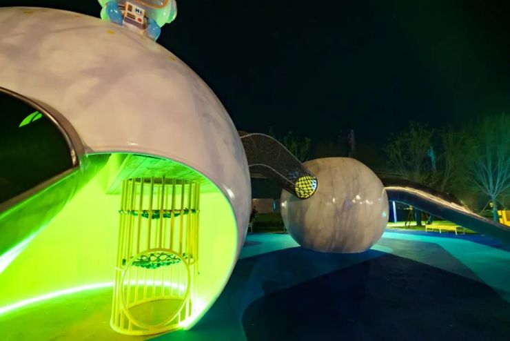 海信时代城公园在整体设计中以星际天体所呈现的球体和圆为主要元素,不仅营造焕然一新的体验感,更是创造出一种开放柔和的休闲环境,置身其间,仿若在广阔宇宙中穿梭。