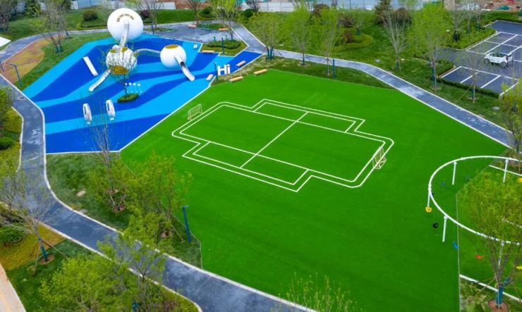此外,公园还设置了阳光草坪,可以作为MINI足球场,足够成为孩子们的“撒野地”。闲暇时,不用驱车去郊外,家门口的大草坪足以悦享惬意。一顿野餐,加上一场亲子萌宠逗乐,将平常的忙碌压力都化作云淡风轻,与家人共度美好时光。孩子们也可以约上三两小伙伴,肆意奔跑在草坪上,放风筝、踢足球、追蝴蝶,无忧无虑地嬉戏玩耍,亲身去感受大自然的奇妙。玩累了往草坪上一躺,在阵阵欢笑中,回归生活本真。