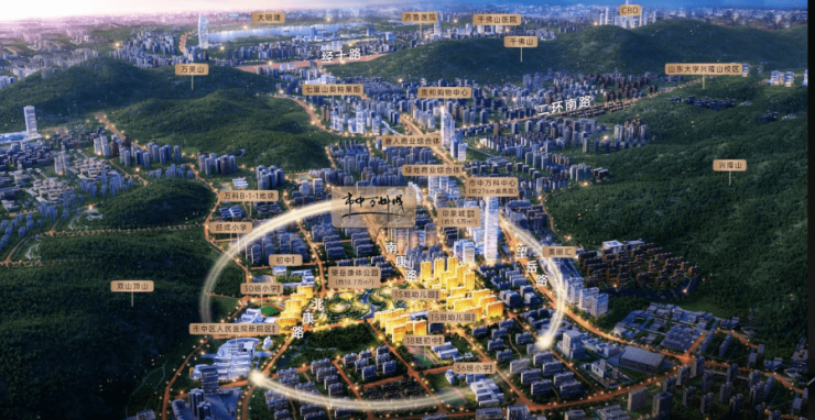 南城是济南自然资源占有的代言,拥有泰山余脉环抱,万泉之源、三面环山自然资源稀缺,并且自然优美的南城规划建造 “望得见山、看得见水”的“一湖三区”生态旅游综合体。基于南城自然优美且稀缺的特点,万科在此处选址,精心打造了低密洋房社区——市中万科城。项目坐拥双山顶山、兴隆山以及万灵山,居民能够享受到隐于自然之中的理想生活。