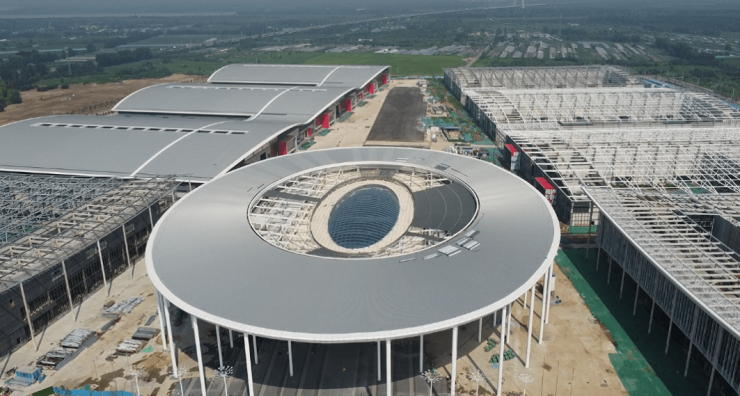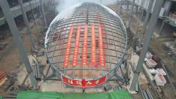 2021年,为确保国博城会展中心一期按期交付,项目组织4000余工人、200余台起重设备大干快上,积极克服特殊天气、疫情等不利影响, “5+2”“白加黑”压茬推进,全力推进国博城会展中心建设进度。