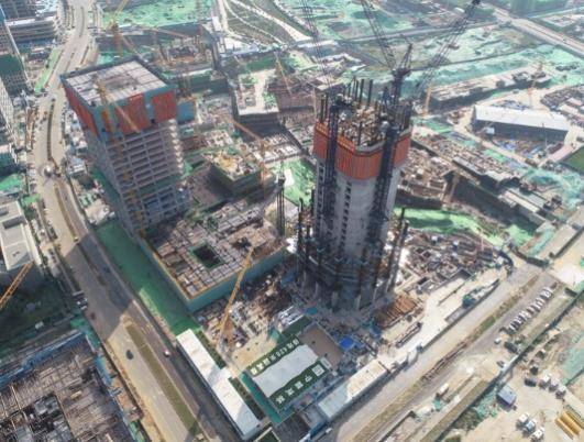 国金中心超高层项目自2019年1月10日主体正负零开始, 626天便突破了300米大关。2020年6月单月完成主体结构施工10层,47、48两个结构层连续施工用时仅为3天12小时18分钟,刷新了行业纪录。
