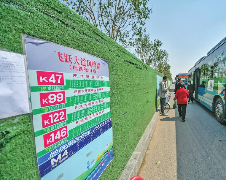济南地铁2号线开通运营后,多条与地铁接驳的公交线路同步开通。在济钢新村和鲍山花园南区之间运营的M4地铁接驳专线,除沿途停靠3个正式站点外,还设置了招手站,市民在临时站点只需招手,公交车就会停靠。 新时报首席记者王锋 摄