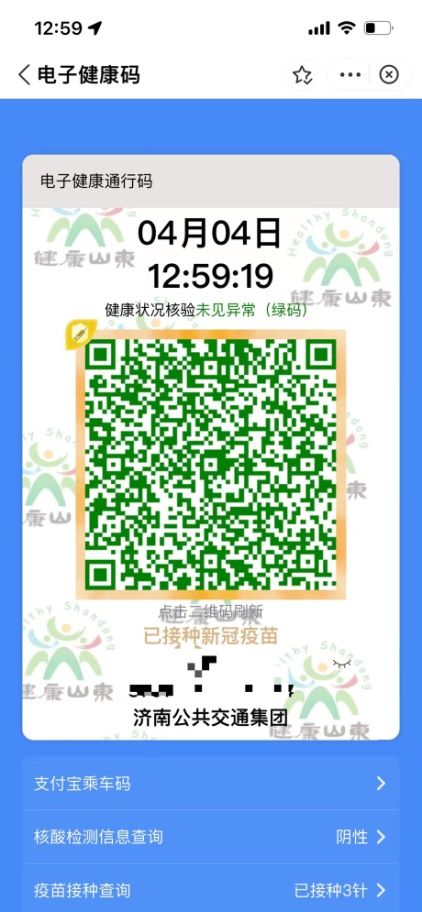 或通过“爱山东”APP扫描“场所码”,直接进入以下绿码界面,将绿码向驾驶员出示即可。
