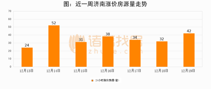 根据诸葛找房数据显示,济南24小时涨价房源量为42套,较12月18日增加10套,环比上涨31.2%。与此同时,涨价房源占比小幅扩大,业主信心有所提升。