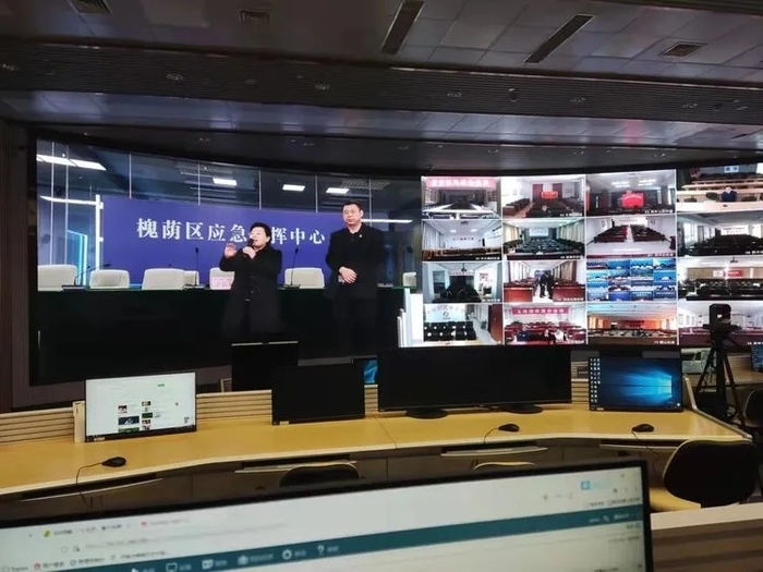 根据年初以来疫情防控的新形势,槐荫区区应急局依托无线通讯专网,为疫情防控指挥部各工作组和全区300个村(居)社区配备了专业370M窄带终端,形成统一的区-街道-社区三级疫情防控指挥调度应急通讯保障体系。利用宽带组网技术,各应急专班工作视频可排名前列时间回传指挥部,为疫情防控指挥部做出相关决策提供了相应支持。