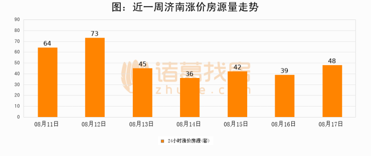 根据诸葛找房数据显示,济南24小时涨价房源量为48套,较08月16日增加9套,环比上涨23.1%。与此同时,涨价房源占比小幅扩大,业主信心有所提升。