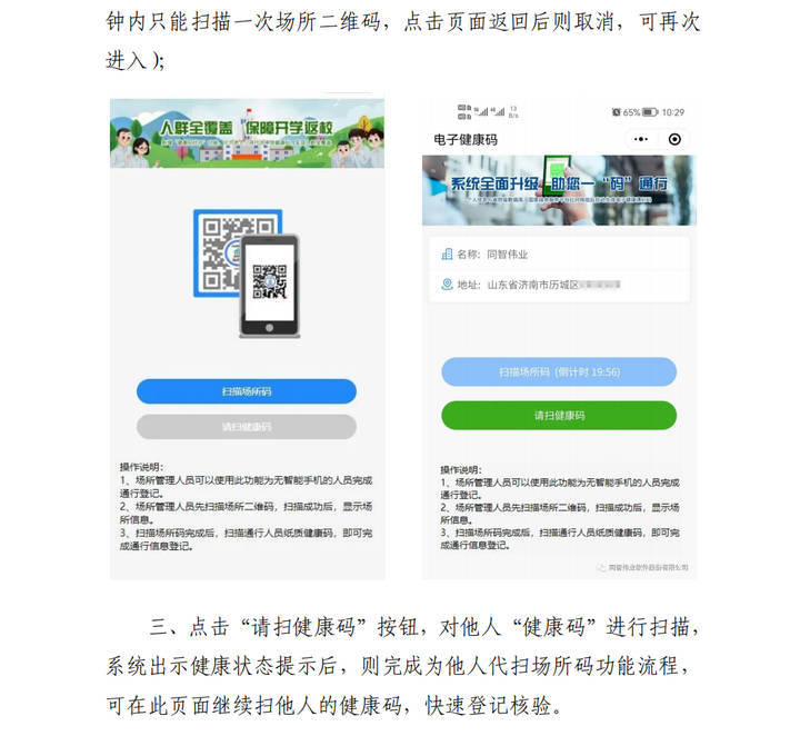 根据济南市文旅局电影处发放的《电影放映场所恢复开放疫情防控明白纸》中的相关要求,电影放映场入口醒目处需张贴“场所码”,有专人对进出观众查验“场所码” “健康码” “行程卡” “7 天内核酸检测阴性证明”,严格落实测体温、一米线、全程佩戴口罩、场所码“代扫功能”。