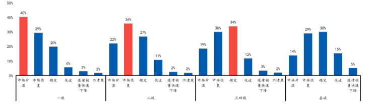 图:受访者对所在城市下半年楼市表现预期(分能级)