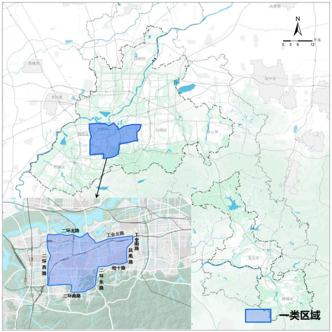 不同管理分区内建设工程配建停车设施拟按所在管理分区规定指标进行规划管理和建设。以配建停车设施适度限制区为例,在原规定中指中心城区二环路以内区域,将其列为二类区域;新规则根据城区发展现状,将中心城二环路以内及二环东—经十路—凤凰路—工业南路—工业北路围合区域,列为配建停车设施适度限制区,并明确为一类区域。中心城一类区域以外区域为配建停车设施适度发展区,列入二类区域。
