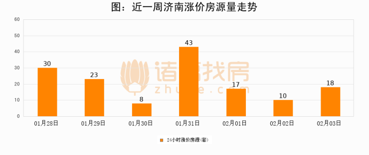 根据诸葛找房数据显示,济南24小时涨价房源量为18套,较02月02日增加8套,环比上涨80%。与此同时,涨价房源占比小幅扩大,业主信心有所提升。