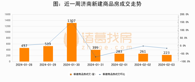 【济南成交日报】02月03日新房成交223套;涨价房源18套