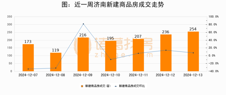 【济南成交日报】12月13日新房成交254套;涨价房源21套