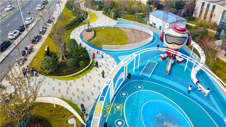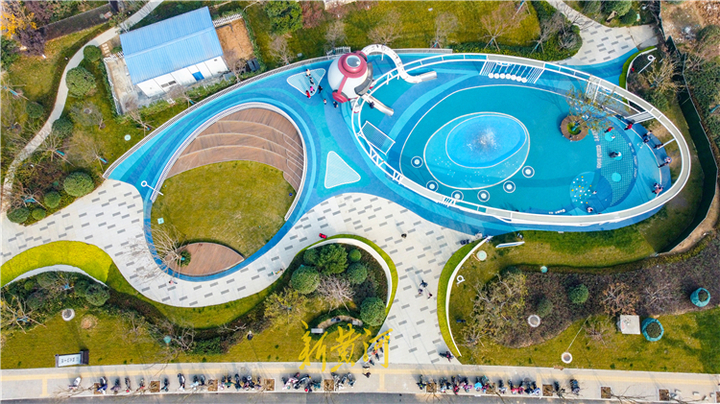 蓝色路面卡通造型 济南这个社区公园格外亮眼