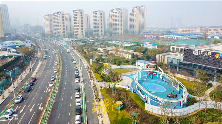 11月19日,随着长岭山南路的开通,位于道路中段的社区公园也全面建成开放。