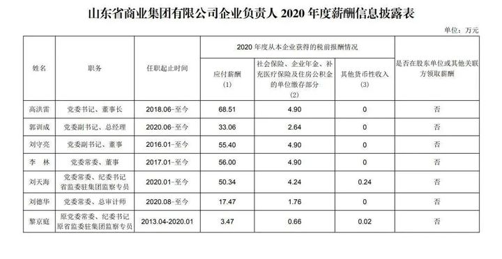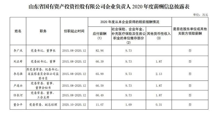 近日,山东省国资委管理的部分省属企业负责人2020年度薪酬信息对外披露。