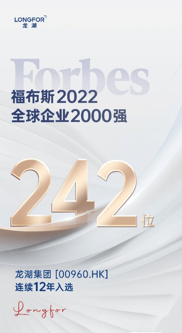 5月12日,《福布斯》发布“2022全球企业2000强”榜单,龙湖集团控股有限公司(「龙湖集团」或「集团」,港交所股份代号:960)凭借在2021年营业收入、利润、资产、市值等多项指标的稳健增长,位居榜单第242位,实现连续12年上榜。