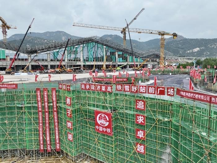 冲刺通车!济莱高铁雪野站前广场主体结构今日封顶