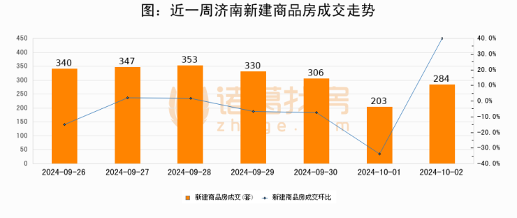 【济南成交日报】10月02日新房成交284套;涨价房源16套